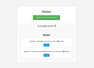 Klik op de groene knop om punten te verdienen en spaar voor nieuwe upgrades in de Winkel.
