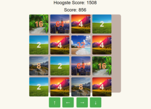 Ga met de pijltjes de blokjes heen en weer bewegen. 2 kan je combineren met 2, 4 met 4, 8 met 8, enz. Probeer zo hoog mogelijke score te halen en misschien wel je oude record inhalen.